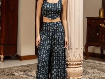 “Stylish dark blue co-ord set, combining comfort and chic design for a polished, effortless look.”
