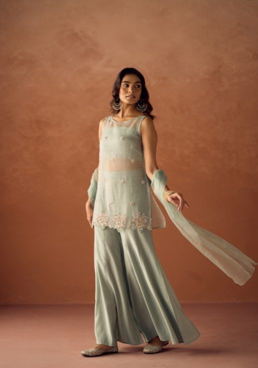 A Soft Petal Palazzo Suit designed with elegant details and flowy fabric, offering a perfect blend of comfort, grace, and modern ethnic charm.